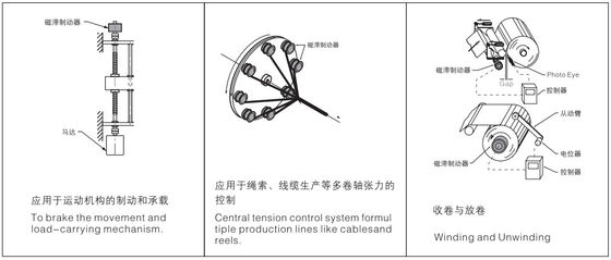 The lag brake is a superior torque and tension control component. It uses the hysteresis principle, through controlling the input of the excitation current, to produce a certain amount of torque. Control current and output torque have a good linear relationship. It provides smooth, stepless, adjustable, speed-independent torque control. Except for the bearing, there is no other friction in the system, with a stable and reliable, high service speed, low noise, long service life, low maintenance cost and other advantages.
