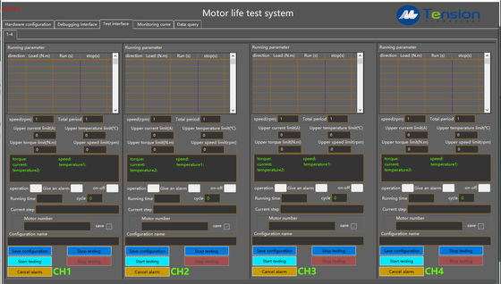 • Different motor loads can be set by changing the brake current, and the working and stopping time of the motor can be arbitrarily set through the host computer software. The maximum working cycle is 999.99 million times, and the machine will automatically stop after the number of cycles is reached. If there is a problem, it will only automatically stop the operation of the station