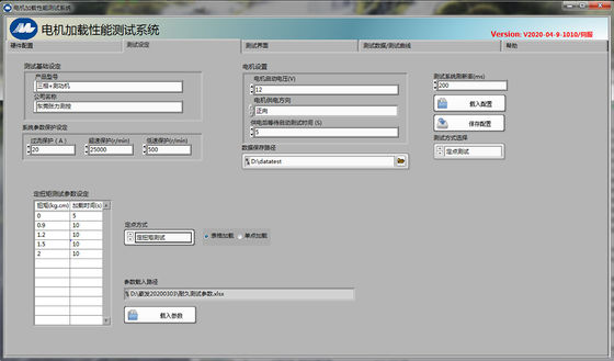 •Automatic test mode: the load is automatically loaded according to the settings, and the characteristic curve of the motor from no-load to locked rotor (or set value) is scanned out. During the process of zero load to corresponding load and corresponding load to no load, there is a corresponding error in the descent curve and the rebound curve. The system can calculate and fit the most realistic curve of the motor through the descent curve and the recovery curve, so this interface is The best way to test.
