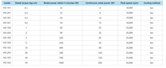 • 12 standard specifications, peak torque from 0.1kg·cm to 50kg·cm